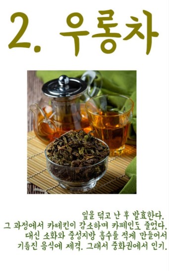 특히, 우롱차는 열량 소모를 증가시키고 지방의 산화를 촉진하여 체중 감량에 효과적입니다. 우롱차에 포함된 카페인과 폴리페놀 성분은 식사 후 포만감을 오래 유지시켜 과식을 방지합니다.