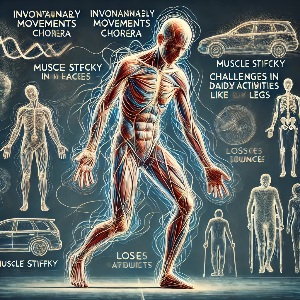 헌팅턴 병의 가장 두드러진 신체적 증상 중 하나는 **비자발적 움직임(Chorea)**입니다. 이 증상은 불규칙적이고 비의도적인 몸의 경련이나 움직임으로, 주로 얼굴, 팔, 다리와 같은 부위에서 나타납니다. 이러한 비자발적 움직임은 시간이 지남에 따라 점점 더 심해져 일상적인 활동을 방해하게 됩니다. 간단한 걷기나 물건을 잡는 것조차도 환자에게는 큰 어려움이 될 수 있으며, 이로 인해 일상생활에서의 자립이 점점 어려워집니다.